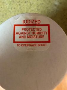 You can see the picture of the top of that box of salt at left. I discovered that the salt was iodized and that it was protected against “humidity and moisture” (which I think are the same thing?). To gain access to that protected and iodized salt, I needed only to “raise spout.” I’ve opened quite a few boxes of salt in my lifetime, and I’m not even sure what prompted me to pay attention to this label. We all know that the spout is under the protective cover, even though it doesn’t tell me that.